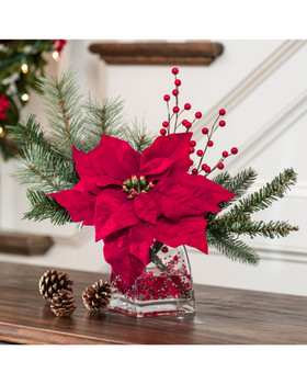 Poinsettia, Pine & Berry Silk Christmas Accent