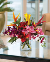 Faux Orchids & Heliconia Tropical Flower Arrangement