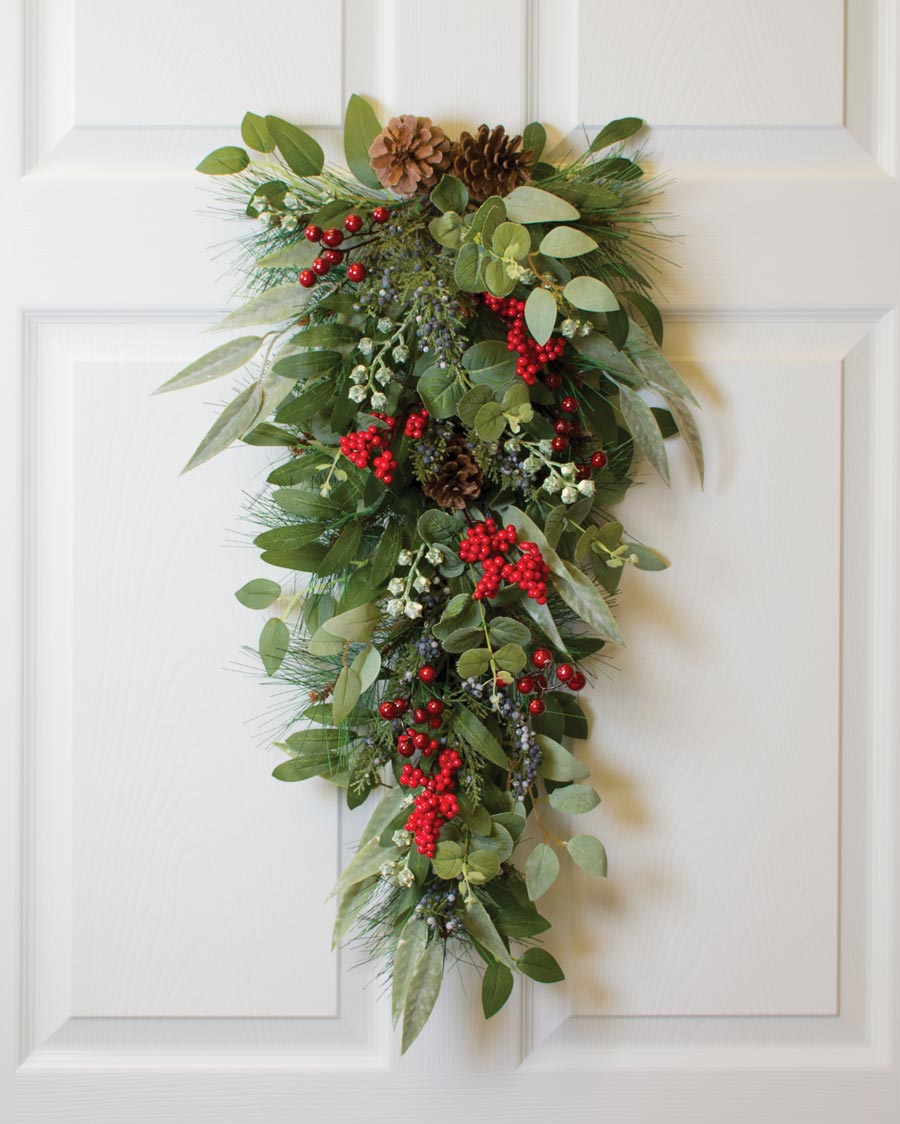 Mixed Eucalyptus, Pine & Berries Silk Holiday Teardrop