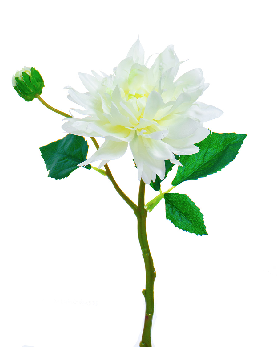 Create a fresh garden look with out 14" Dahlia Silk Flower Stem Sprays. Available in four colors. 10 stems shown in photo in our cylinder glass vase and clear gems (sold seperately).